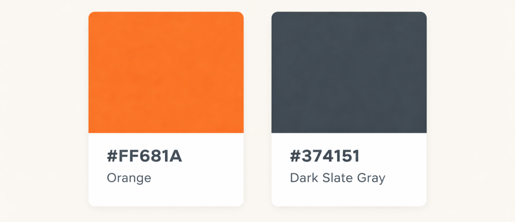 Relating to colour, I used a very simple and consistent palette, to strengthen the brand identity. I selected the main accent colour in form of #ff681a since it gives vibrancy and friendliness to the important items in the web page like buttons and call to actions. I selected the background colour of the footer to be in the form of number #374151 which was the background colour that would make the footer stand out of the main content but at the same time, the background remains in the same colour scheme as the rest of the site.